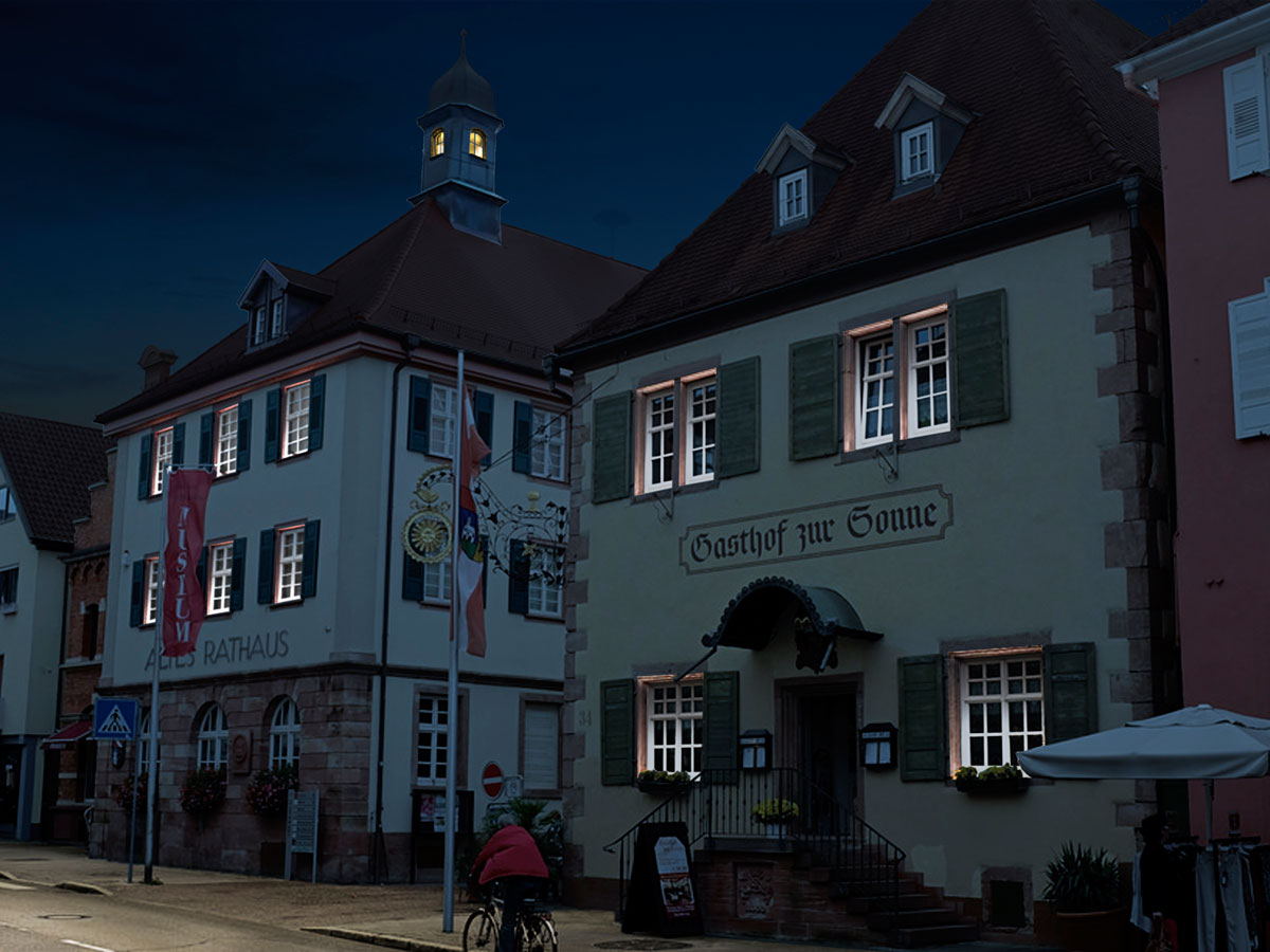Die Ausschreibung der Akzentbeleuchtung ist erfolgt, sodass die Auftragsvergabe noch vor der Sommerpause durch den Gemeinderat erfolgen kann. Anschließend werden mit jedem Immobilieneigentümer die Details der Installation besprochen. Mit der Realisierung wird nach den Sommerferien begonnen.